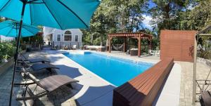 The private pool and fireplace are the standout features of this holiday home. Meals can be prepared in the well-fitted kitchen, which has a refrigerator, a dishwasher, an oven and a microwave. The spacious air-conditioned holiday home features a flat-screen TV, a washing machine, a tea and coffee maker, a seating area as well as garden views. The unit has 1 bed.