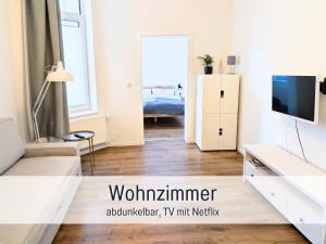 Cet appartement se compose de 1 chambre, d'un salon, d'une cuisine entièrement équipée avec un réfrigérateur et une machine à café, ainsi que de 1 salle de bains avec une douche et un sèche-cheveux. Le linge de lit et les serviettes sont fournis par Salz&Wind Modernes Apartment in Kiel zentral & 24h Selbst Check In.