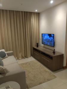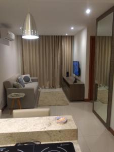 Questo appartamento con balcone e vista sul giardino offre 1 camera da letto, un soggiorno, una TV a schermo piatto, una cucina con frigorifero e microonde e 1 bagno con doccia. Samba Rio - Farmasi Arena - Rio Centro - Parque Olimpico - Projac - Barra fornisce lenzuola e asciugamani ai propri ospiti.