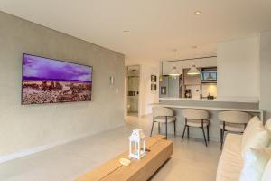 Questo appartamento con terrazza e vista sulla montagna offre 3 camere da letto, un soggiorno, una TV a schermo piatto, una cucina con frigorifero e microonde e 2 bagni con vasca idromassaggio.