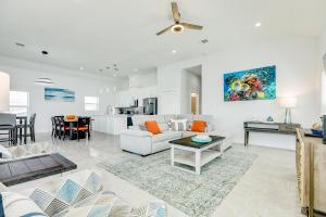 Ilość pokoi: 1Featuring a private entrance, this spacious holiday home also comprises 3 bedrooms, a seating area and 2 bathrooms with a walk-in shower and a bath. Guests can make meals in the kitchen that comes with a stovetop, a refrigerator, a dishwasher and kitchenware. This air-conditioned holiday home features a dining area, a TV with streaming services a washing machine and a terrace. The unit offers 5 beds.