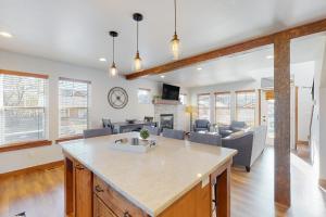 This holiday home features a fireplace. This spacious holiday home comprises 1 living room, 3 separate bedrooms and 2 bathrooms with a hairdryer and free toiletries. Guests will find a stovetop, a refrigerator, a dishwasher and kitchenware in the kitchen. The holiday home also provides guests with a barbecue. The air-conditioned holiday home provides a TV with streaming services, a washing machine, a private entrance and a tea and coffee maker. The unit offers 5 beds.