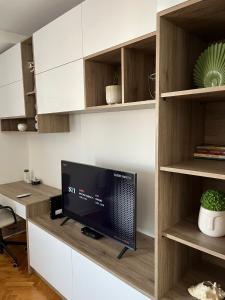Boasting a private entrance, this air-conditioned apartment features 1 living room, 1 separate bedroom and 1 bathroom with a walk-in shower and a hairdryer. In the fully equipped kitchen, guests will find a stovetop, a refrigerator, a dishwasher and kitchenware. Featuring a terrace with city views, this apartment also features a washing machine and a flat-screen TV. V této ubytovací jednotce se nachází 2 postele.