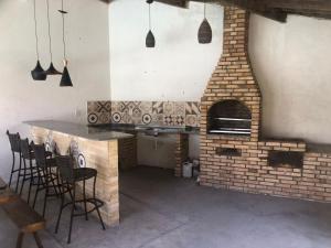 The holiday home with a terrace and pool views features 3 bedrooms, 2 living rooms, a flat-screen TV, an equipped kitchen with an oven and a microwave, and 5 bathrooms with a shower. Santos & Macena - Milagres includes an outdoor dining area.
