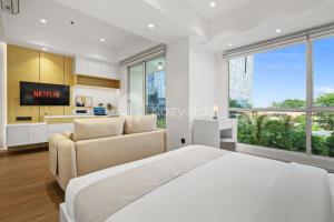 El apartamento cuenta con un balcón y vistas a la ciudad e incluye 1 dormitorio, sala de estar, TV de pantalla plana por cable, cocina equipada y 1 baño con bidet y ducha. El apartamento Saruvi by Kozystay - Kuningan dispone de toallas y ropa de cama.
