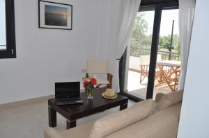 350 metres from the beach, this air-conditioned apartment offers balcony and terrace overlooking the Aegean Sea, the mountains and the garden. Features 2 separate bedrooms, an open-plan kitchen with living room, a bathroom with shower and an additional toilet. Free Wi-Fi access and a flat-screen TV are available.