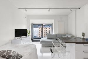 Obiekt Scandinavian attic apartment in the city center, znajdujący się w znakomitej lokalizacji w samym centrum miejscowości Helsinki, zapewnia taras i widok na miasto. Apartament Scandinavian attic apartment in the city center posiada balkon.
