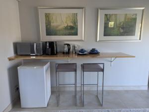 Diese Ferienwohnung hat eine Terrasse, 1 Schlafzimmer, ein Wohnzimmer und eine gut ausgestattete Küchenzeile mit einem Kühlschrank und einem Toaster. In dieser Ferienwohnung werden Handtücher und Bettwäsche zur Verfügung gestellt.