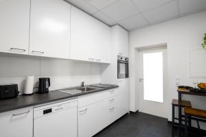 Questo appartamento presenta 1 camera da letto, una cucina con frigorifero e lavastoviglie e 1 bagno con doccia, set di cortesia e lavatrice. Asciugamani e lenzuola sono inclusi nei servizi di Schängel Chic 21.