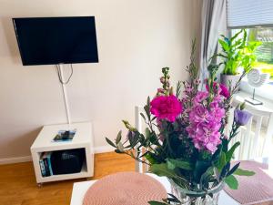 The apartment with a terrace and garden views has 1 bedroom, a living room, a flat-screen TV, an equipped kitchen with a dishwasher and a toaster, and 1 bathroom with a shower. Guests at Schicke & zentrale Ferienwohnung in Westerland nahe Strand can enjoy the surroundings from the outdoor dining area. For added privacy, Schicke & zentrale Ferienwohnung in Westerland nahe Strand features a private entrance.