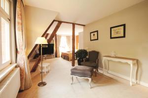 Stylish room with a living area and a private bathroom with shower. Some rooms offer a view of the park or the courtyard.