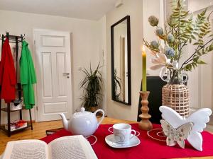 In der Nähe der in Quedlinburg in der Region Sachsen-Anhalt gelegenen Unterkunft Schöne Ferienwohnung am Mathildenbrunnen befinden sich Bahnhof Quedlinburg und Altstadt Quedlinburg. Die Unterkunft bietet kostenloses WLAN und einen kostenlosen Privatparkplatz.