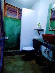 This large studio comes with a kitchen with a refrigerator and stove. It also has a terrace and a private bathroom with a shower and toilet.
