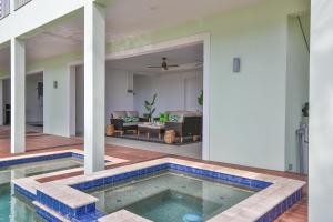 The private pool and hot tub are the standout features of this holiday home. This spacious holiday home comes with a kitchen, a seating area, 3 separate bedrooms and 3 bathrooms with a bath and a shower. Guests will find a stovetop, a refrigerator, a dishwasher and kitchenware in the well-fitted kitchen. The holiday home also includes a barbecue. The air-conditioned holiday home features a flat-screen TV with cable channels, a washing machine, a tea and coffee maker, a dining area as well as sea views. The unit has 3 beds.