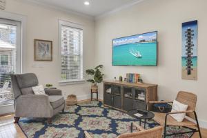 Boasting a private entrance, this air-conditioned holiday home features 1 living room, 5 separate bedrooms and 3 bathrooms with a bath and a hairdryer. In the fully equipped kitchen, guests will find a stovetop, a refrigerator, a dishwasher and kitchenware. The spacious holiday home features a flat-screen TV with cable channels, a washing machine, a tea and coffee maker, a seating area as well as sea views. The unit has 8 beds.