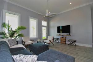 The air-conditioned holiday home has 3 bedrooms and 2 bathrooms with a bath and a shower. Guests will find a refrigerator, a dishwasher, kitchenware and an oven in the fully equipped kitchen. The holiday home also includes a barbecue. The holiday home features a washing machine, a tea and coffee maker, a seating area, a dining area and a TV with cable channels. The unit has 3 beds.
