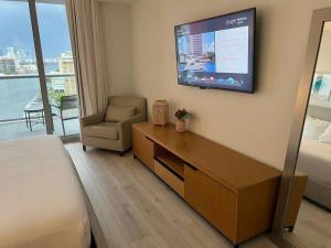 Cet appartement compte 1 chambre, une cuisine avec un réfrigérateur et un four, une télévision à écran plat, un coin salon, ainsi que 1 salle de bains possédant une baignoire ou une douche. Le linge de lit et les serviettes sont fournis par Seaside Retreat in Miami, Full Kitchen & Balcony Views -A.