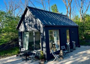 La casa o chalet ofrece terraza, vistas al jardín, zona de estar, TV por cable, cocina totalmente equipada con nevera y fogones, y baño privado con ducha y secador de pelo. También se ofrece tostadora y hervidor en Seaside Village House & Sauna on Werder peninsula.