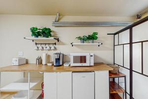 Modern Amenities: Guests can enjoy streaming services, a work desk, and a TV. The home includes a tea and coffee maker, hairdryer, coffee machine, refrigerator, microwave, and free toiletries.