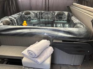 Providing a terrace and garden views, the apartment includes 1 bedroom, a living room, satellite flat-screen TV, an equipped kitchen, and 1 bathroom with a walk-in shower and a hot tub. Parquet floors, a fireplace, and a peaceful vibe enhance the ambience of the room at Secret Gem 1 Bed Garden Flat Private Luxury Hot Tub. Secret Gem 1 Bed Garden Flat Private Luxury Hot Tub includes an outdoor dining area.