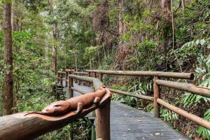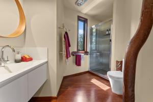 This air-conditioned penthouse offers a fireplace, a double spa bath and a balcony offering high views of the lake and rainforest. There is a kitchenette and a BBQ on the balcony.