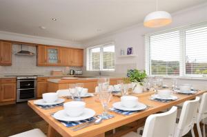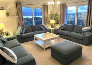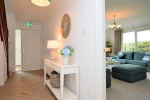 The fireplace is a top feature of this holiday home. Boasting a private entrance, this spacious holiday home also comes with 1 living room, 5 separate bedrooms and 4 bathrooms with a bath. Meals can be prepared in the kitchen, which features a stovetop, a refrigerator, a dishwasher and an oven. The holiday home features a flat-screen TV with streaming services, a washing machine, a seating area, a wardrobe as well as sea views. The unit has 7 beds.