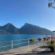 Das Apartment See und Berge Garden mit Terrasse und Bergblick bietet 2 Schlafzimmer, ein Wohnzimmer, einen Flachbild-TV, eine gut ausgestattete Küche mit Kühlschrank und Geschirrspüler sowie 1 Badezimmer mit Dusche. In dieser Ferienwohnung werden Handtücher und Bettwäsche zur Verfügung gestellt.