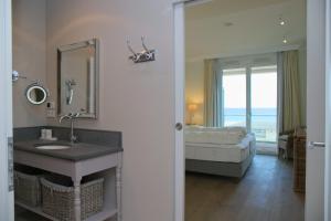 Apartament w Seeblick Waterfront 2 inkl WLAN posiada balkon, sypialnię, salon z telewizorem, kuchnię z lodówką i zmywarką oraz łazienkę z prysznicem. Z obiektu roztacza się widok na morze.