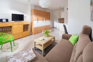 The apartment provides a sofa, a high chair for children, as well as a private bathroom featuring a shower and a hairdryer. In the fully equipped kitchen, guests will find a stovetop, a refrigerator, a dishwasher and kitchenware. The apartment features tiled floors, a seating area with a flat-screen TV with satellite channels, a washing machine, a coffee machine, as well as a wardrobe. The unit offers 1 bed.