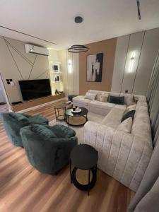 This spacious apartment consists of 1 living room, 3 separate bedrooms and 3 bathrooms with a walk-in shower and free toiletries. In the kitchen, guests will find a stovetop, a refrigerator, a microwave and a tea and coffee maker. The apartment provides air conditioning, a washing machine, a private entrance, soundproof walls and a flat-screen TV with streaming services. The unit offers 5 beds.