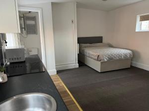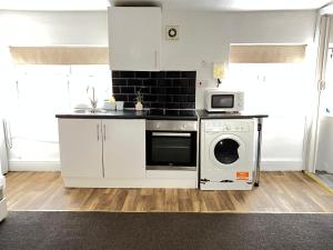 The fully equipped kitchen has a refrigerator, an oven, a microwave and an electric kettle. The apartment features a washing machine, a wardrobe, a carpeted floor as well as heating. The unit has 1 bed.
