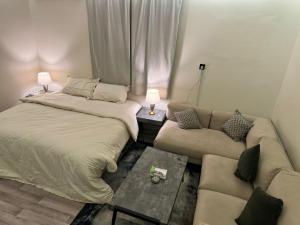 Апартаменты استوديو حي الخليج Self entry apartment оснащены кондиционером, телевизором с плоским экраном и располагают 1 спальней.