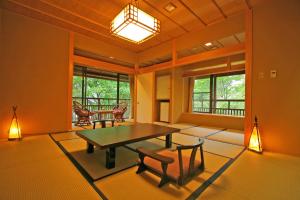 Alle Zimmer bieten Bergblick, traditionelle Tatamiböden (aus gewebtem Stroh) und einen niedrigen Tisch mit Sitzkissen. Zu den weiteren Annehmlichkeiten gehören ein Flachbild-TV und ein Kühlschrank. Im eigenen Bad liegen ein Haartrockner und kostenfreie Pflegeprodukte für Sie bereit. WLAN nutzen Sie in allen Zimmern des Senjukaku kostenfrei.