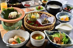 Das Ryokan serviert verschiedene saisonale japanische Gerichte mit Bio-Gemüse und Rindfleisch aus der Region.