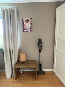 Este apartamento climatizado en Sentralt i Fredrikstad, gratis parkering og varmepumpe med AC consta de 1 dormitorio, sala de estar, baño con ducha y secador, y zona de cocina completa con nevera y cafetera. El apartamento Sentralt i Fredrikstad, gratis parkering og varmepumpe med AC dispone de toallas y ropa de cama.