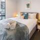 Apartament Serene 2 Bed CBD Retreat z tarasem posiada dwie sypialnie, dwie łazienki z prysznicem, salon z TV oraz kuchnię z lodówką i zmywarką. Z okien obiektu roztacza się widok na miasto. Ręczniki i pościel są dostępne w apartamencie Serene 2 Bed CBD Retreat.