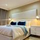 Apartament Serene harbour view escape oferuje dwie sypialnie, dwie łazienki, kuchnię oraz pościel i ręczniki. Obiekt oferuje telewizor i balkon z widokiem na miasto.