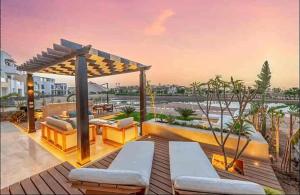 Tento apartmán má terasu a 1 ložnici. Vybavení Serene Lakeview Escape 2BR at Cyan ElGouna zahrnuje TV s plochou obrazovkou.
