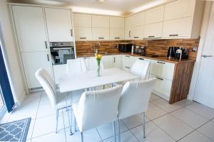 This holiday home has a washing machine, toaster and sofa. A travel cot and high chair is also provided.