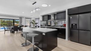 The fireplace is the standout feature of this holiday home. The air-conditioned holiday home has 4 bedrooms and 3 bathrooms with a bath and a shower. Guests will find a stovetop, a refrigerator, a dishwasher and kitchenware in the well-fitted kitchen. The holiday home also includes a barbecue. This holiday home features a washing machine, a coffee machine, a TV and a patio. The unit has 4 beds.