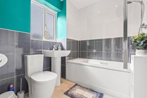 The holiday home features 4 bedrooms, 2 bathrooms, a kitchen and a seating area. Guests can make meals in the kitchen that comes with a refrigerator, kitchenware, a microwave and a toaster. The holiday home provides a flat-screen TV, a washing machine, a tea and coffee maker, a dining area as well as garden views. The unit offers 4 beds.