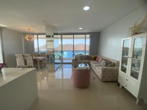 The spacious apartment is fitted with 3 bedrooms, 4 bathrooms, bed linen, towels, a flat-screen TV with streaming services, a dining area, a fully equipped kitchen, and a terrace with sea views. The air-conditioned unit at the property features a hot tub and a dressing room. Servicio Personal de Cocina Incluido - Apartamento Santa Marta Samaria - 3beds, 4baths, Cabo Tortuga is allergy-free and non-smoking.