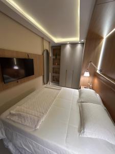 Das klimatisierte Seu Refúgio em SC umfasst zwei Schlafzimmer, eine Küche und ein Badezimmer. Es gibt einen Flachbild-TV.