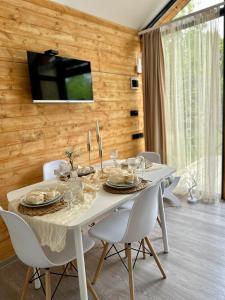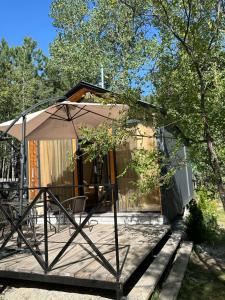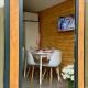 Dieses Ferienhaus bietet eine Terrasse, 1 Schlafzimmer, ein Wohnzimmer und eine gut ausgestattete Küchenzeile mit einer Minibar. Es gibt einen Flachbild-TV.