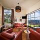 Dieses Ferienhaus mit einer Terrasse und Bergblick hat 2 Schlafzimmer, ein Wohnzimmer, einen Flachbild-TV, eine gut ausgestattete Küche mit einem Kühlschrank und einem Geschirrspüler sowie 1 Badezimmer mit einer Dusche. In diesem Ferienhaus werden Handtücher und Bettwäsche angeboten.