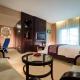 Las habitaciones están equipadas con minibar, set de té y café, plancha y caja fuerte. El baño es privado y consta de albornoces, zapatillas y artículos de aseo gratuitos.