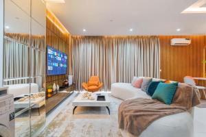 This apartment's special features are the private pool and the hot tub. The apartment's kitchen is available for cooking and storing food. This apartment features air conditioning, a washing machine, a flat-screen TV and a balcony. The unit offers 4 beds.
