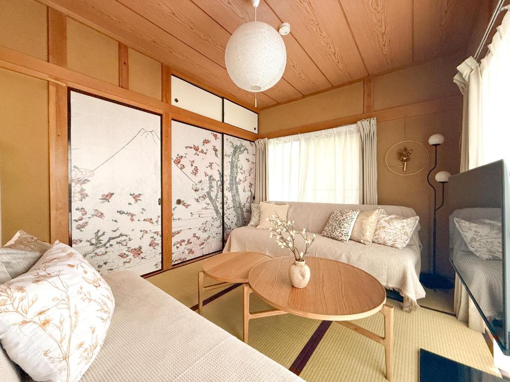 春花秋月 -Shunkashugetsu- cuenta con aire acondicionado, 1 dormitorio y baño con bidet, ducha y artículos de aseo gratuitos. La cocina está equipada con nevera y microondas, además de hervidor.