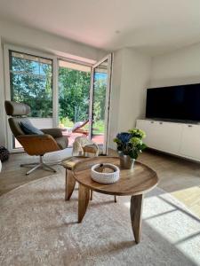 Pokoje: 1Featuring 2 bedrooms, this spacious apartment offers 1 bathroom with a shower, a seating area and terrace where you can relax. Guests will find a stovetop, a refrigerator, a dishwasher and kitchenware in the well-equipped kitchen. The apartment also provides guests with a barbecue. The apartment provides a TV, a washing machine, a coffee machine, a wardrobe as well as garden views. V této ubytovací jednotce se nachází 2 postele.