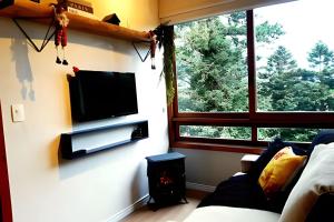 Klimatizovaný apartmán Siga Gramado - Lindo com vista! Centro a pé! tvoří 1 ložnice, obývací pokoj, plně vybavená kuchyň s lednicí a troubou a 1 koupelna. Součástí apartmánu ubytování je posezení, pračka a koupelna s toaletními potřebami zdarma.